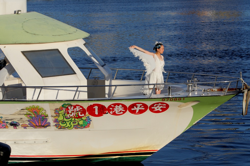 比起與現實處境斡旋,她更常讓想像先行奔馳。2016年,舞團在安平港碼頭演出《悠遊.水岸》,她構思過搭建水上舞台、動用大型吊車,把舞者從遠洋送至岸邊,然而漲退潮的精確時刻、船隻登陸設施、舞者在船上的身體掌握、大型船隻如何配合流動、經費與人力⋯⋯各種不定因素層層牽制、彼此拮抗,最終,舞者沒有如願抵岸,在遊艇上化身白鷺鷥翩然而至,又緩緩遠離。